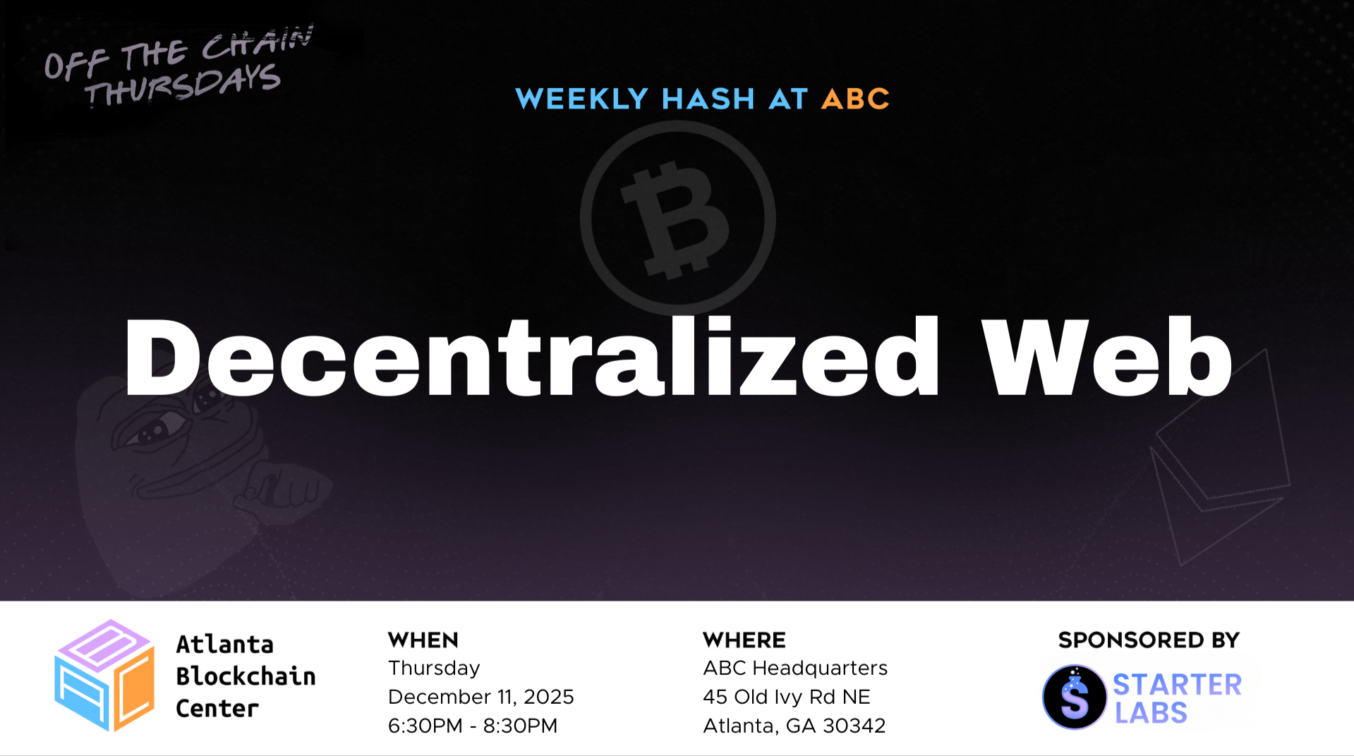 We’ll walk through the origins of the decentralized web dating back to the early Internet Archive movement, how DWeb connects the people, projects, and protocols shaping this ecosystem, and why their work matters for builders right here in Atlanta. This is our first deep-dive introduction to the organization, and a chance for our community to understand how DWeb supports the future we’re all building toward.