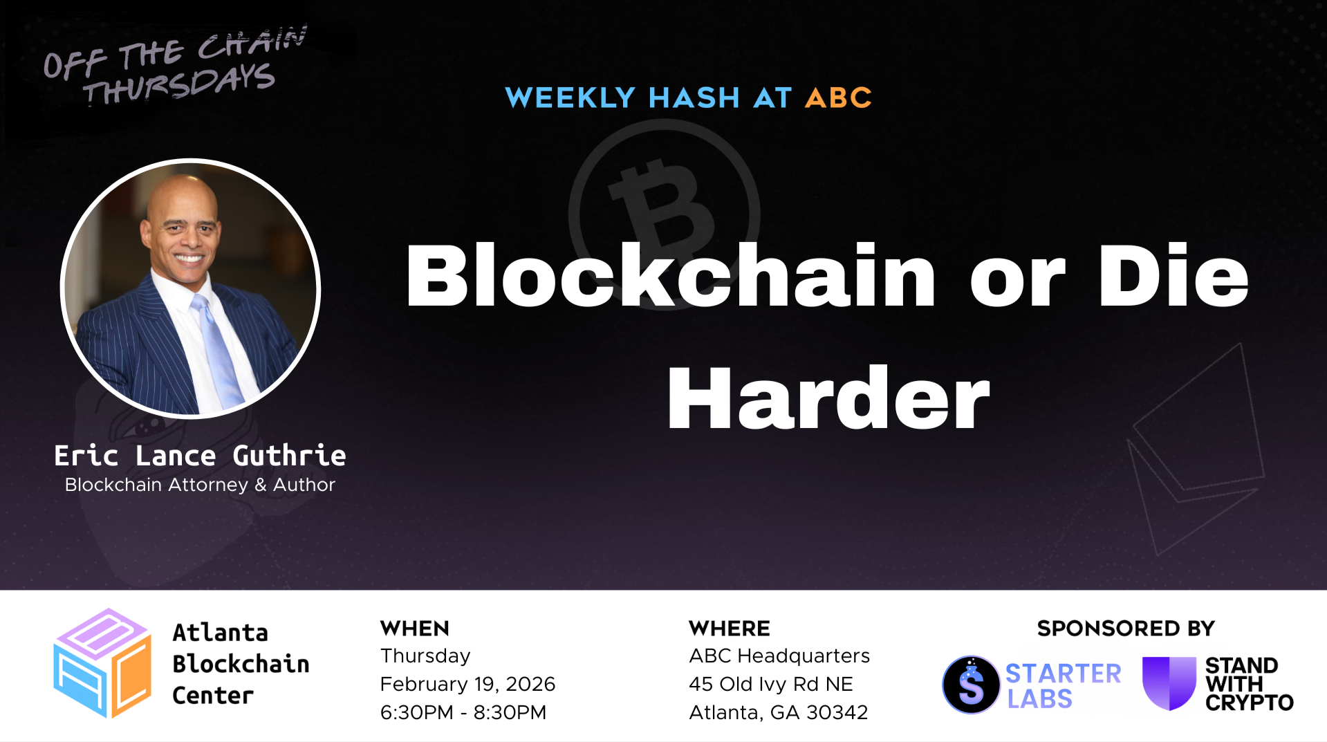 This Thursday at Off The Chain Thursday, we’re welcoming back Eric L. Guthrie for a powerful session centered around his new book, Blockchain or Die Harder. Eric isn’t just coming to speak — he’s coming to activate the room. This will be part conversation, part campaign, and part competition as we rally behind a bold goal: pushing his book to #1 by the end of the day Thursday.